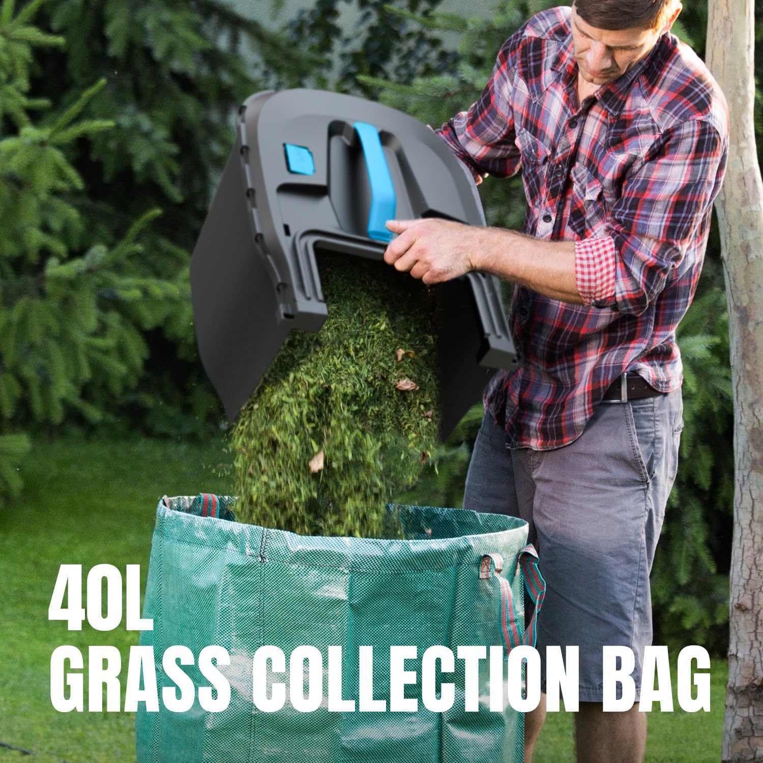 - 18 Inch deck width: The cordless electric lawn mower features a 18 inch cutting deck that allows you to handle grass quickly and easily, also comes with a 40L grass collection bag, perfect for gardens, yards and farms