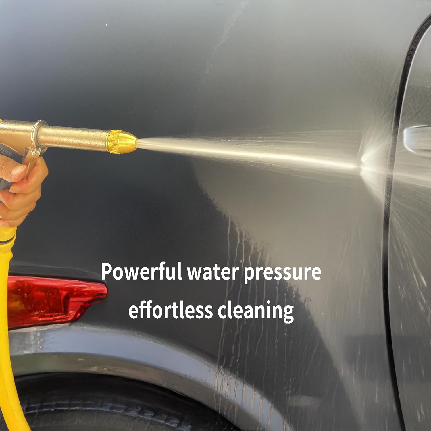 - Powerful and Reliable Water Pressure Designed to maintain a strong and consistent water stream, helping you tackle stubborn dirt and grime on driveways, vehicles, garden tools, and more. Please note: Water pressure depends on your water supply system. For enhanced pressure, use with a compatible booster device.
