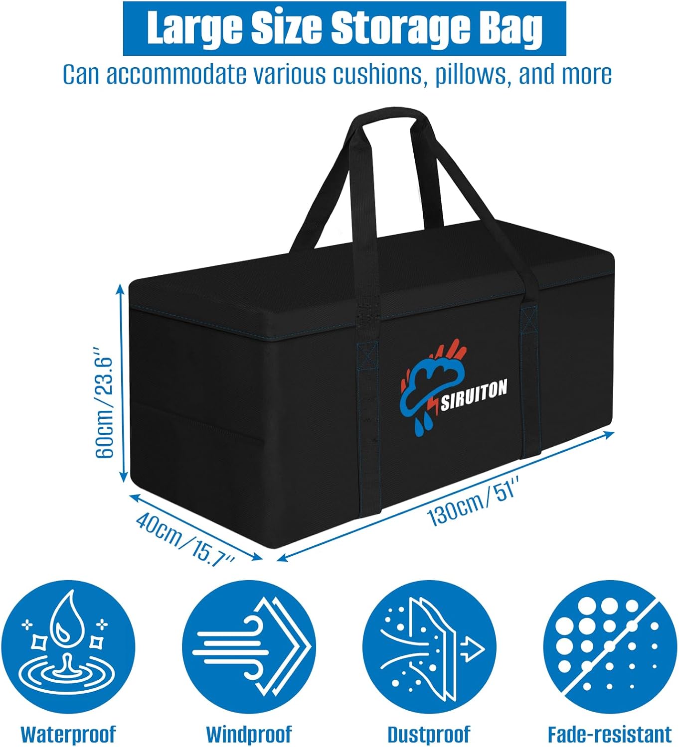 SIRUITON 51.2”L x 15.7”W x 23.6”H Outdoor Cushion Storage Bag,Patio Furniture Cushion Storage Bag,Heavy Duty Rip Proof 600D Oxford,with Handle and Zipper of Waterproof Garden Cushion Storage Covers