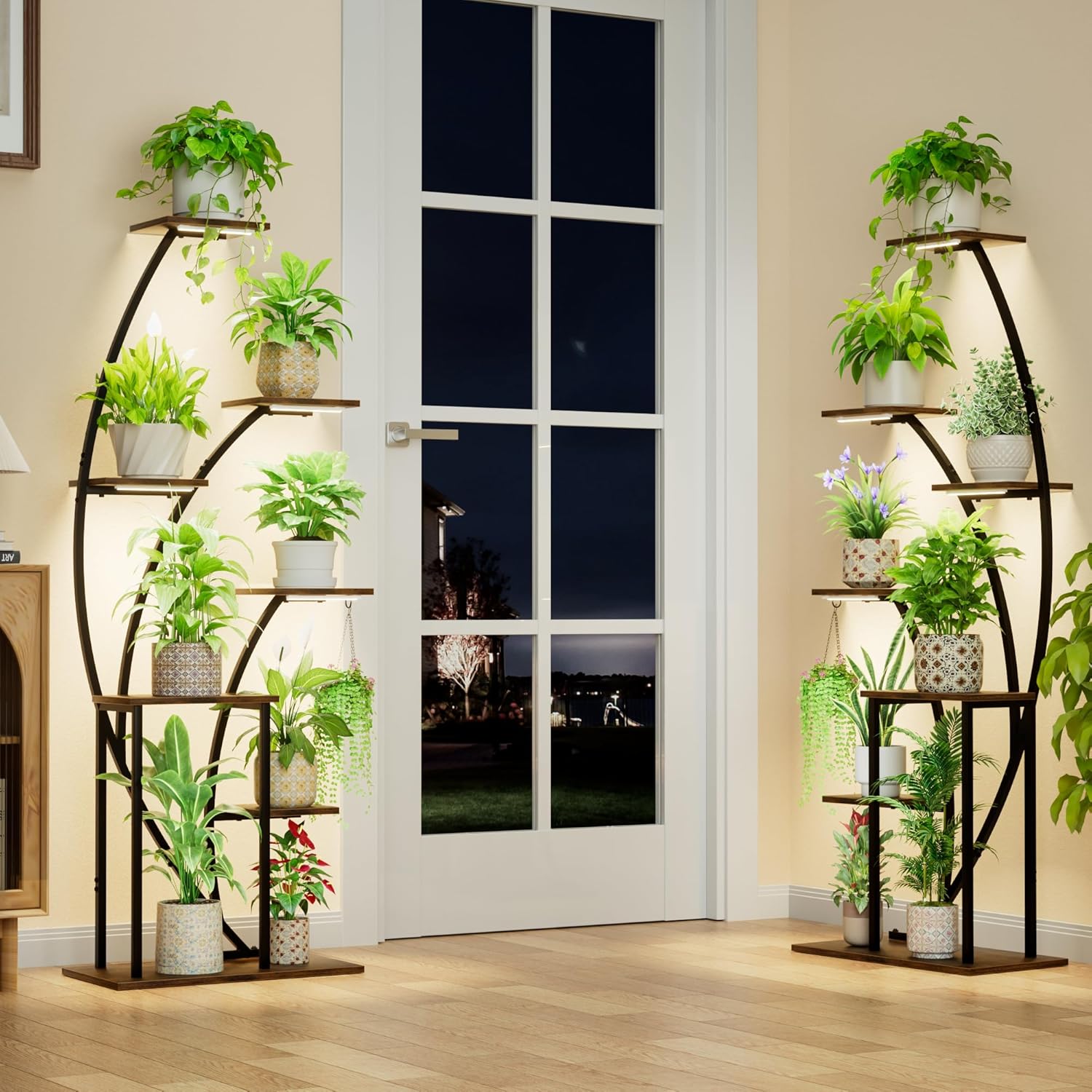 - [Plant Stand with Grow Lights]: Designed for healthy plant growth, our plant stand with grow light features full-spectrum grow light with timer and brightness adjustments, ensuring your plants receive optimal light indoors. As a plant stand indoor, it eliminates the need to move plants outside for sunlight, making it ideal for any corner of your home.