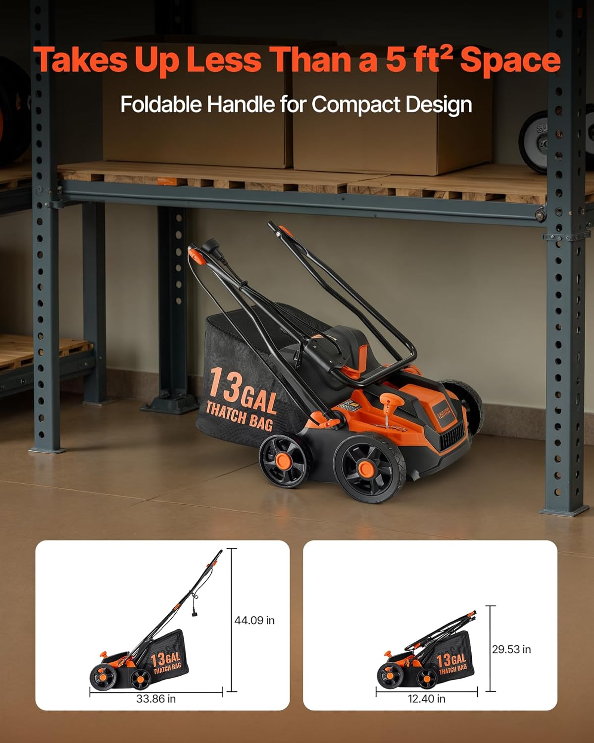 - Easy Setup & Compact Storage: This corded dethatcher and scarifier boasts a quick 2-step start-up with no complicated assembly. Its foldable handle reduces overall height for compact storage, and the lightweight 22 lbs body makes transport easy